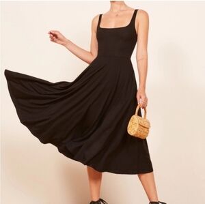 Reformation Rou Black Midi Dress Size Small Balletcore Chic