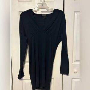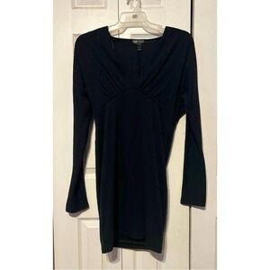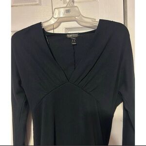 Revamped Black Long Sleeve V-Neck Dress Ruched Waist Size XL Little Black Dress