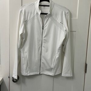 Elegant white jacket with comfort stretch. Moisture management. Ideal for everyday wear. Tag says white but it is a bit off white.