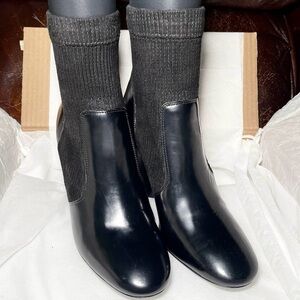 Tory Burch velvet sock booty block heels, NAPA leather black US 8.5