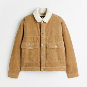 H&M Men's Dark Beige Corduroy Trucker Jacket with Sherpa Borg Lining Size XXL