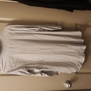 Casual button-down shirt with classic black and white stripes. Ideal for versatile styling.