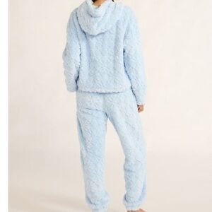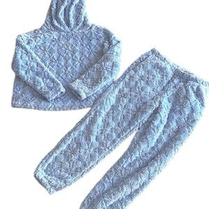 Joyspun Cozy Blue Textured Plush Pajama Lounge Set Cropped Hoodie & Joggers Sz S