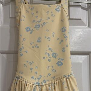 Hard to find! Girls dress in a delightful yellow with blue floral patterns. Size 11/12. Excellent condition! Like new!