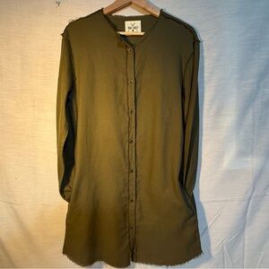 Tribe Kelley Olive Cotton Raw Edge Shirt Dress NWOT