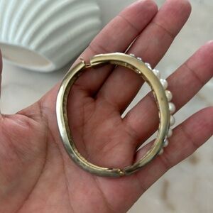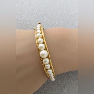 Vintage Craft Bracelet Gold Tone Faux Pearls hinge snap clasp Bracelet