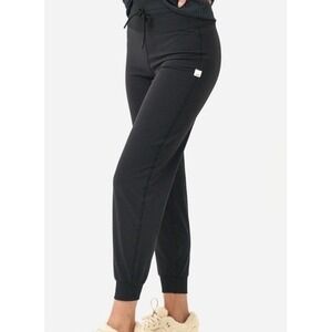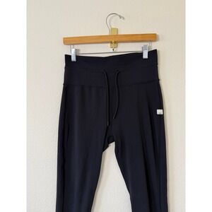 Great used condition. Vuori Women Black High Rise Daily Drawstring Jogger Pants Size Medium. Rise 12in, inseam 24in. Only flaw is the rubber on the end of the drawstring is missing.