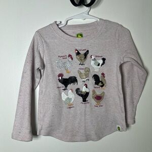 John Deere Toddler Girls Chicken Graphic Long Sleeve Shirt Pink Glitter 4T