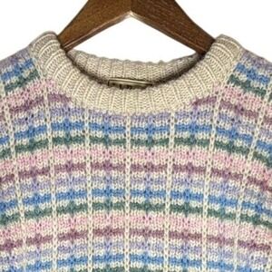 Vintage LL Bean Womens Wool Sweater S/M Pastel Plaid Crewneck Pullover Grandma