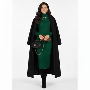 Make a statement this season with this stunning emerald green sweater dress by 525 (sold at Evereve). Featuring a classic cable knit texture and a chic turtleneck, this dress combines warmth with a flattering, body-hugging silhouette. The viscose-blend fabric provides a soft hand feel and excellent stretch. New with tags, this piece is perfect for holiday gatherings, winter date nights, or polished office wear.