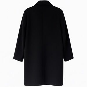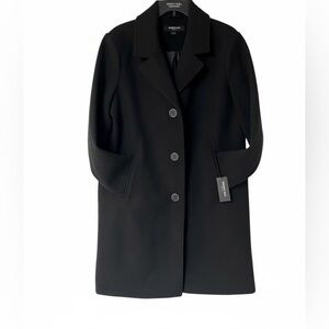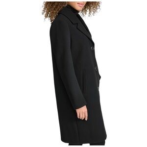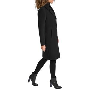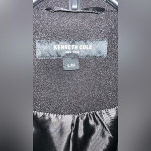 Kenneth Cole coat, womens black coat, notch collar coat, single breasted coat, long black jacket, womens overcoat, fall winter coat, classic black coat, office wear jacket, workwear outerwear, business casual coat, minimalist coat, tailored jacket, dress coat, commuter coat, layering jacket, womens outerwear, modern classic coat, travel jacket, everyday coat, chic black coat, size large coat, L womens jacket, polished outerwear, capsule wardrobe
