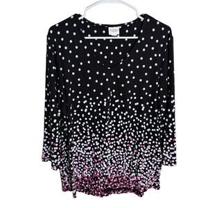 Asos Blouse Women's 14 Black Printed V-Neck Long Sleeve Career Shirt Top