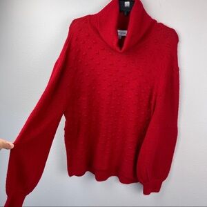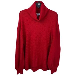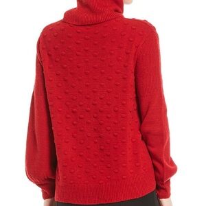 New without tags, no flaws, Gibson Latimer size Red Popcorn Raised Polka Dot chunky knit turtleneck Sweater, long puff sweater, hi-low design, super soft and warm, 50% acrylic, 29% rayon, 19% nylon, 2% spandex. Ribbed hem and cuffs, dropped shoulder.