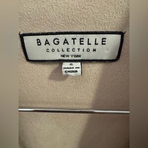 Bagatelle faux suede drape jacket in taupe. A great fall piece to go from day to night. There is one small thread pull on the arm but you can barely tell. See photos for details