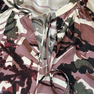 Grade & Gather Women’s Long Sleeve Key Hole Neck Blouse Purple and Cream Small