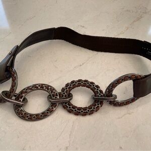 Marked by refined elegance, unique design, and superior craftsmanship, this brown and metal SUZI ROHER handmade belt is a standout accessory!