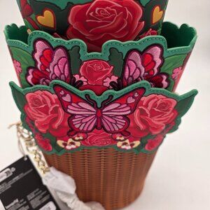 Loungefly Floral Butterfly Wicker Basket Crossbody Bag Roses NWT