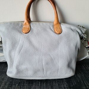 This is a fabulous vintage Roots bag! A great size for everyday use. There is a zippered pocket on the outside and two regular pockets and a zippered pocket on the inside. She can be used as a satchel or a crossbody bag with the removable, adjustable crossbody strap. I love the colour of this bag.....grey with a slight pale blue tint. Full zippered closure and protective feet on the bottom. Measure flat 13 x 8.5 x 4.5 inches. She is in excellent condition with minor signs of use...please see photos. Please feel free to ask any questions. Smoke-Free, Pet Friendly Home. Thanks for visiting my closet! 🥳NEW TO POSHMARK?🥳 Sign up for free using my referral code NATUREJAQ and get $15 off your purchase!