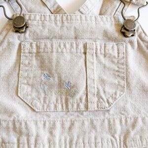 Vintage 90s / Y2K era Classic Pooh toddler overalls, size 24 months. Delicate Pooh, Tigger, and light blue dragonfly embroidery. Adjustable metal buckle straps, carpenter pocket, and lightweight ripstop cotton fabric. Snaps under legs.