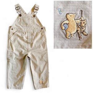 Vintage 90s Y2K Classic Winnie the Pooh Beige Khaki Embroidered Overalls 24 mos