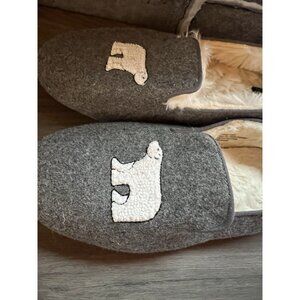 Talbots Fireside Embroidered Polar Bear Slippers Gray Women’s 8M