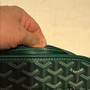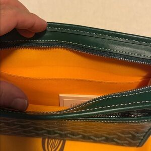 Elegant Goyard clutch with signature emerald pattern. Ideal for essentials.