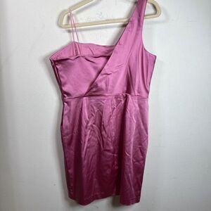 (R7) LAUREN Ralph Lauren Satin One-Shoulder Cocktail Dress in Pink Size 16