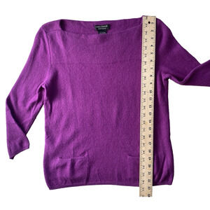 Lord & Taylor 100% Cashmere Sweater Boatneck Soft Quiet Luxury Size Large Fitted. Color is a purple/ magenta. Has 2 pockets.