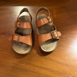 Comfortable Nike sneakers for kids. Features white and black design with tan accents. Ideal for daily adventures. A couple of smudges on the rubber part at the bottom