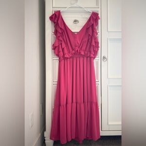 💗 Black Tape Hot Pink Ruffle Midi Plus Size Dress - NWOT!