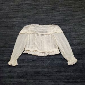 Free People Size S Cream Florence Bed Jacket Sheer Tie Front Ruffle Lace Top