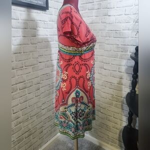 Style & Co V-Neck Short Sleeve Boho Dress Size PS. Teal, Orange, Yellow, Green