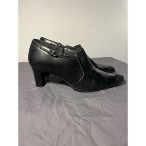 Women's 9 Black Block Dress Heel Booties Square Toe Liz Claiborne Zipper Buckle