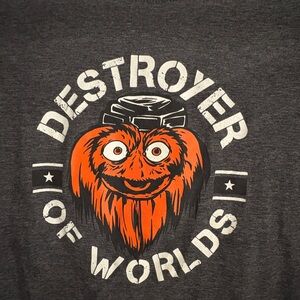 Philadelphia Flyers Gritty Destroyer of Worlds dark gray tshirt. Size medium, like new condition, brand is ‘Next-Level’.