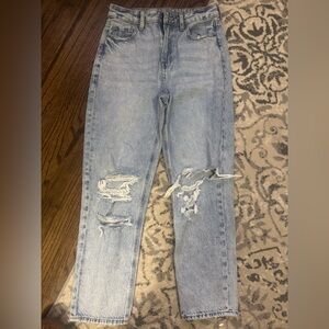 American Eagle Mom Jean Light Wash Distressed Straight Leg Jeans Size 4 regular