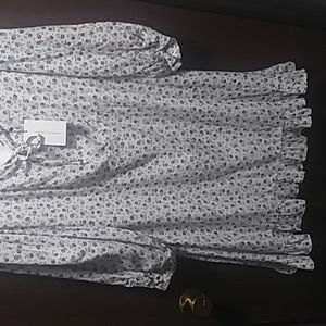 Lightweight non-stretch crepe, sweetheart neckline, floral print. Pleated gather & bow between cups, long blouson sleeves. Hook & eye closure, hidden zip at back. 100% rayon. NWT. Size XL (US 10)