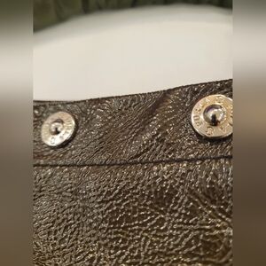 Elegant Vintage Furla hobo bag with a shimmering olive green finish. Snap closure. Perfect for adding a touch of glamour. Excellent preloved condition. Small ink mark in the liner.