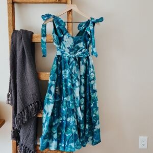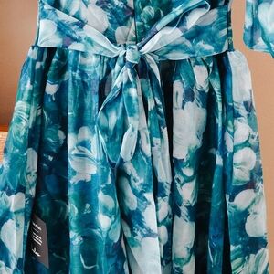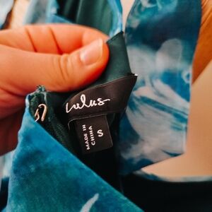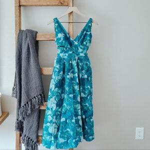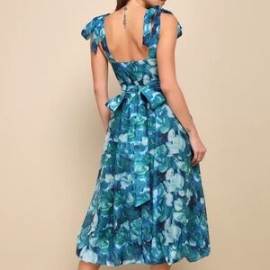 NWT Lulus Flowering Day Dream Teal Blue Floral Organza Midi Dress – Size S