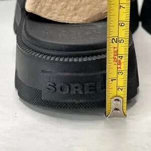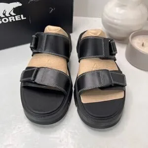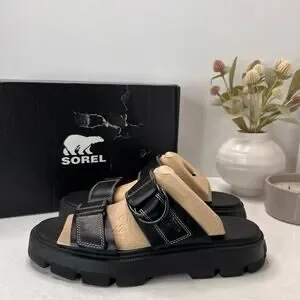 Sorel Rein CB Slide Leather Platform Sandal Black Women's 11 Tried On