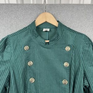 CAbi Jacket Womens Medium Green Knit Military Double Breasted Button Blazer Work