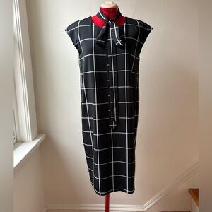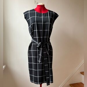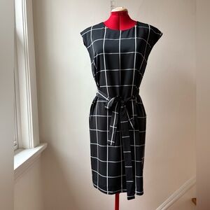 Step out in style with this elegant windowpane sheath dress. The tie waist adds a flattering touch, making it perfect for any occasion. Could also be worn around the neck for an interesting twist!