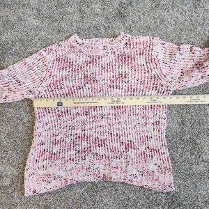 Cupio Knit Sweater Women's XL Pink Red Confetti Bow Sleeve Ties Valentine's Day