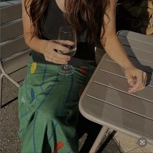 Stylish green skirt with vibrant multicolor accents. Perfect for a chic look.