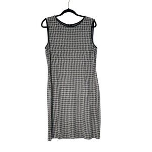 St. John Houndstooth Leather Trim Wool Shift Dress, size 12