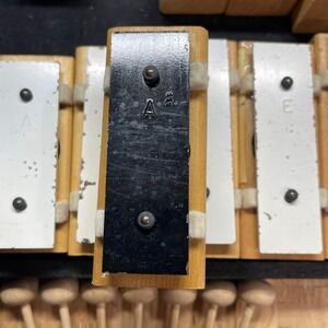 Keywords: vintage percussion, resonator bells, glockenspiel set, music education, classroom instruments, BF Kitching, chromatic bells, melodic percussion, vintage musical instrument, mallet percussion, xylophone style, made in USA