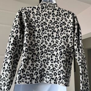 Stylish leopard print sweater. Perfect for casual outings. Soft and comfortable material.