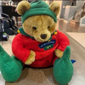 Charming Hallmark bear in vibrant red and green. Soft and cuddly design.