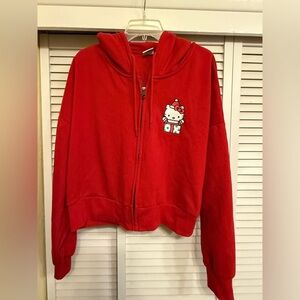 Aeropostale Red Christmas Hello Kitty cropped Full Zip Sweatshirt Women’s XXL