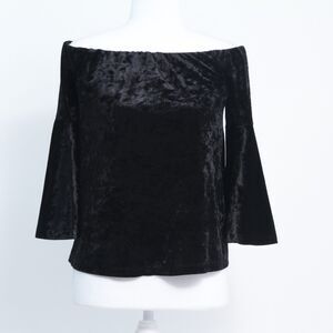 1.State Womens Black Velvet Off-Shoulder Bell Sleeves Classic Comfort Top Small.