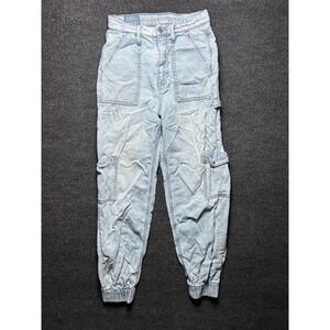 American Eagle Womens Light Wash Denim Cargo Baggy Jogger Jeans Size 00 Short